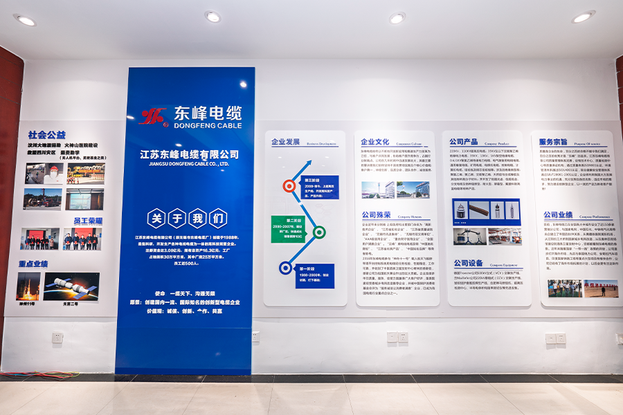 Jiangsu Dongfeng Cable Co., Ltd. was established in 1988. It is a national high-tech enterprise integrating R&D, production and sales of various types of wires and cables. It has been rated as a ‘National Green Factory’, ‘Jiangsu Province Specialised, Specialised, Innovative and New Enterprise’, ‘Jiangsu Province Quality and Integrity Enterprise’, ‘AAA Credit Enterprise’, and ‘National User Satisfaction Enterprise’.
